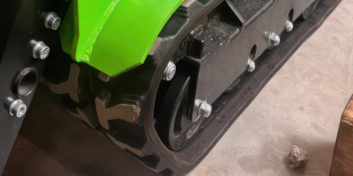 Gumové pásy poskytují vynikající trakci, nižší tlak na podloží a lepší manévrovatelnost ve srovnání s tradičními ocelovými pásy nebo pneumatikami. Jsou ideální pro práci na choulostivých površích, jako jsou trávníky, beton nebo interiéry.